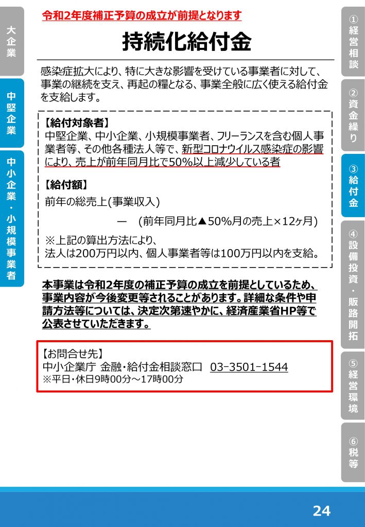 2020年4月9日 / 最終更新日時 : 2020年4月9日 akatsuki 資金調達 持続化給付金 事業化支給金の暫定情報が公開されております。補正予算の成立が前提となりますので、要件等が変更されることもあります。詳細が分かり次第、アップさせていただきます。 コメントを残す コメントをキャンセルメールアドレスが公開されることはありません。 * が付いている欄は必須項目ですコメント * 名前 * メール * サイト 次回のコメントで使用するためブラウザーに自分の名前、メールアドレス、サイトを保存する。